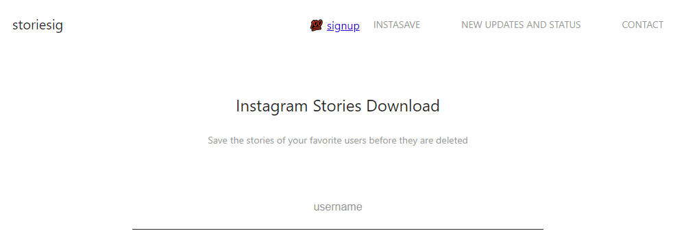 먼저 스토리시그 사이트를 통한 인스타 스토리 몰래보기 방법입니다. 사이트에 접속하면 아래와 같은 검색창이 보이는데 여기에 상대방 인스타 아이디를 입력하기면 하면 됩니다.